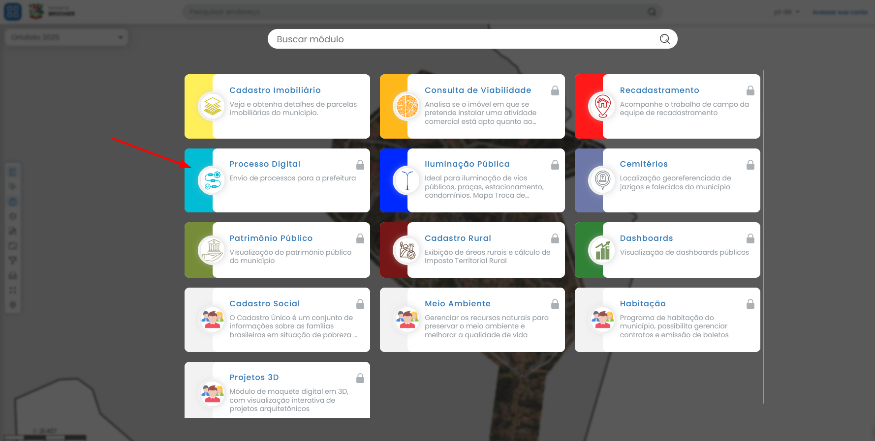 Ao acessar o link, clique no botão "PROCESSO DIGITAL":