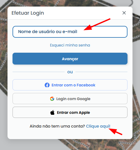 Na próxima tela, crie sua conta ou efetue login (caso já tenha conta):