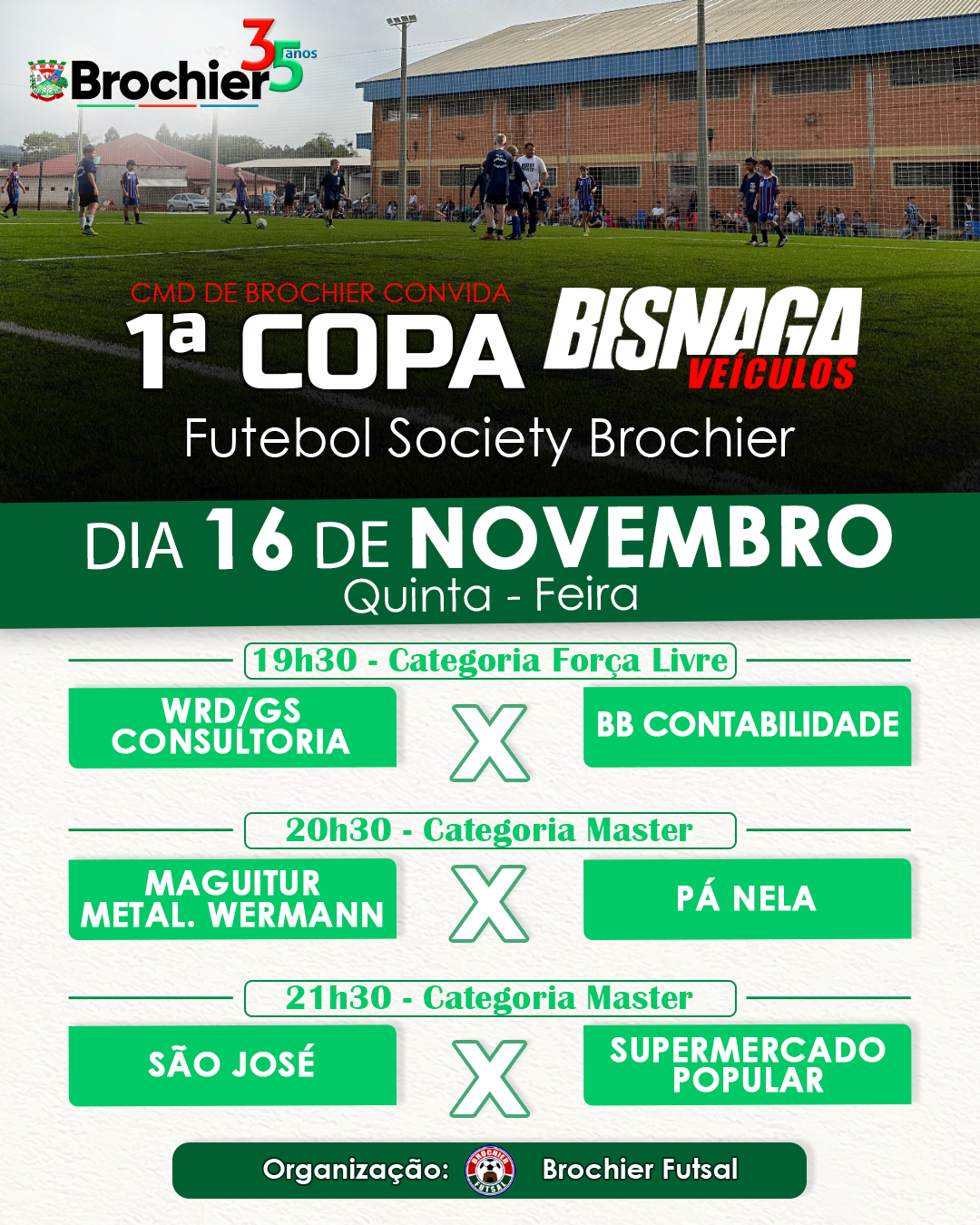 Hoje é dia de rodada pela Copa Bisnaga Veículos -Futebol Society Brochier