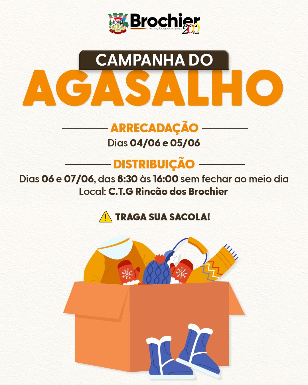 Realize sua contribuição, doando agasalhos em boas condições, nos dias 04 e 05/06.