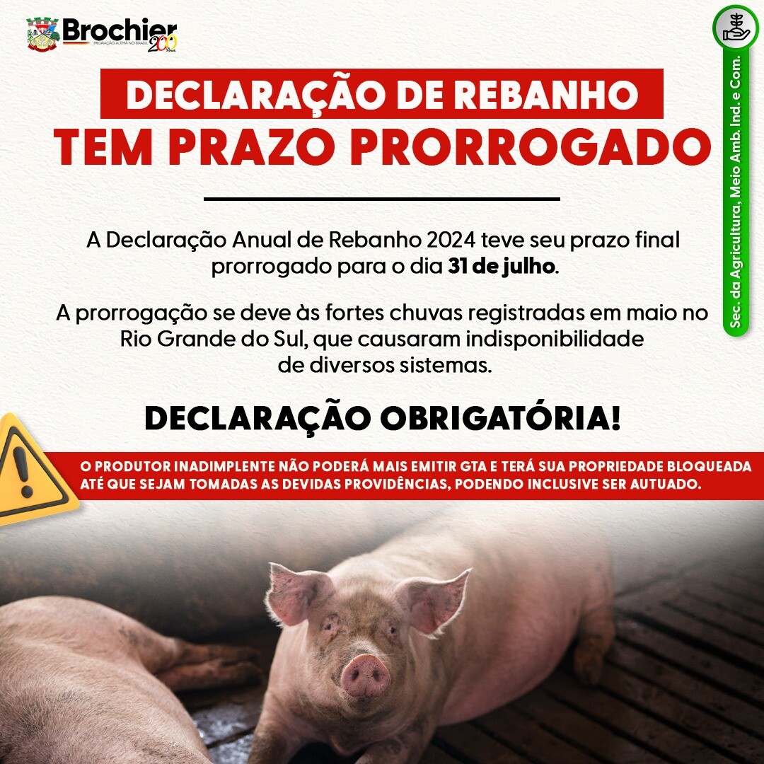DECLARAÇÃO DE REBANHO TEM PRAZO PRORROGADO!