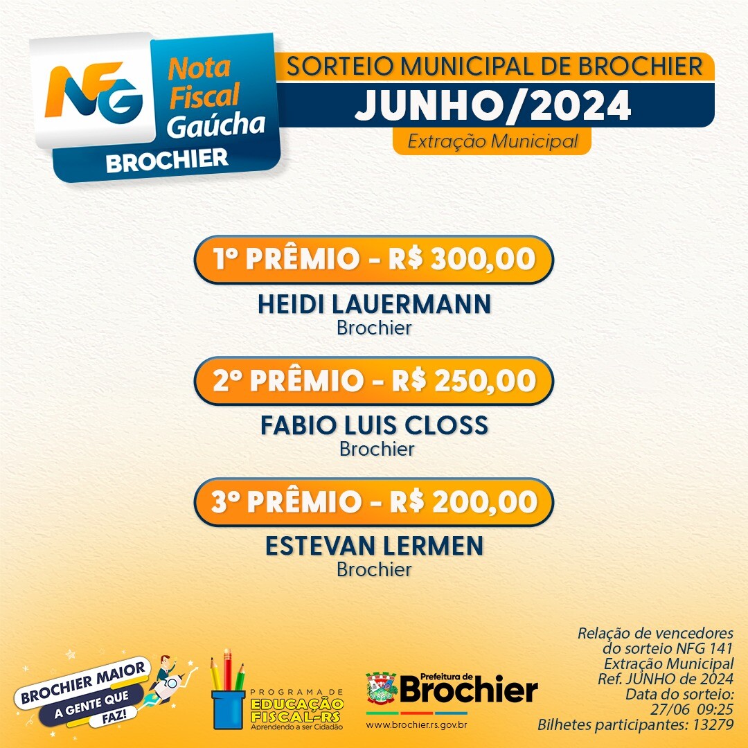 NOTA FISCAL GAÚCHA: CONHEÇA OS GANHADORES DO MÊS DE JUNHO DE 2024