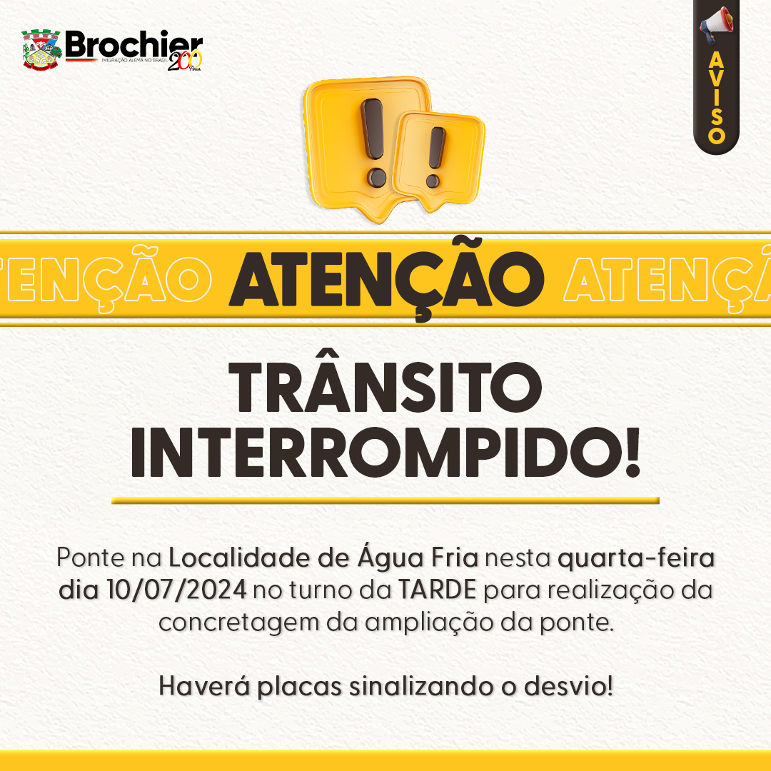 Ponte na Localidade de Água Fria nesta quarta-feira dia 10/07/2024 no turno da TARDE para realização da concretagem da ampliação da ponte.