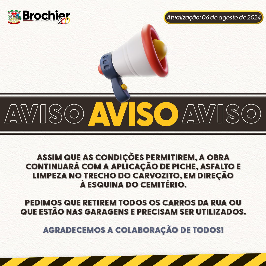 Assim que as condições permitirem, a obra continuará com a aplicação de piche, asfalto e limpeza no trecho do Carvozito, em direção à esquina do cemitério.