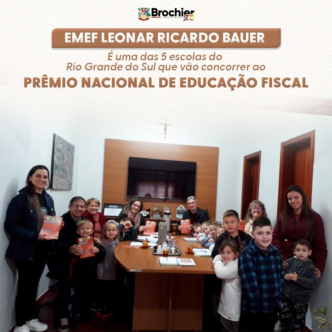 A EMEF Leonar Ricardo Bauer, de Brochier, foi selecionada como uma das cinco escolas finalistas do Rio Grande do Sul para concorrer ao Prêmio Nacional de Educação Fiscal. Este prêmio reconhece projetos que promovem a conscientização sobre a educação fiscal, e nesta primeira etapa, diversos projetos foram avaliados, destacando a escola de Brochier entre as melhores do estado. O projeto de devolução de medicamentos, idealizado pela professora Joana Inês Klein, conquistou os jurados e agora representará Brochier na competição nacional, concorrendo com escolas de todo o Brasil.