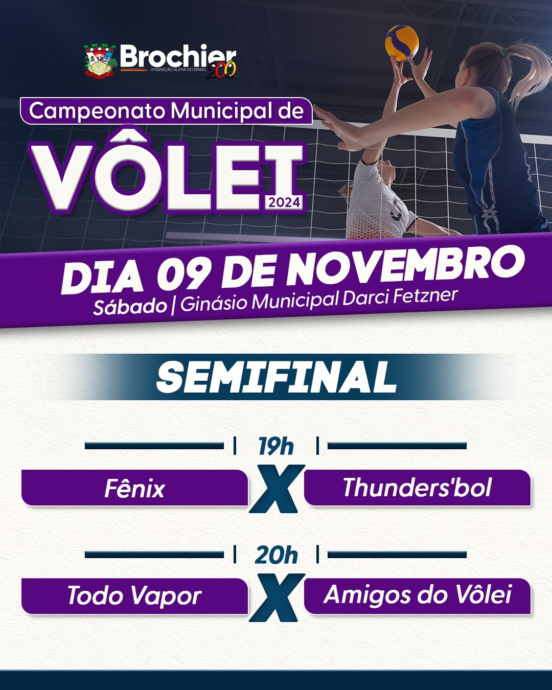 Neste sábado, 9 de novembro, nosso ginásio municipal Darci Fetzner vai tremer com disputas incríveis a partir das 19h! Venha torcer e vibrar com a gente por mais essa fase emocionante do campeonato!