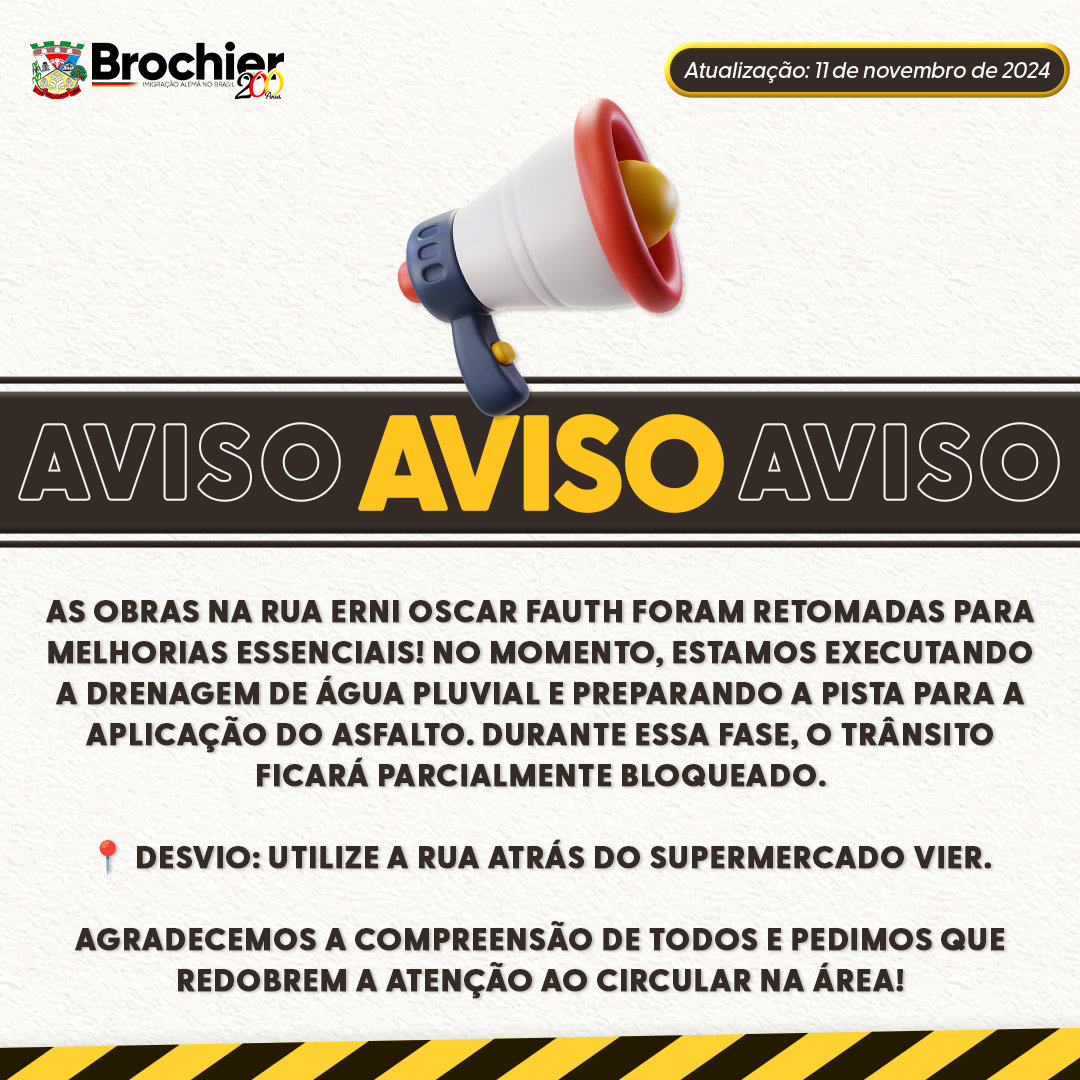 📍 Desvio: Utilize a rua atrás do Supermercado Vier.