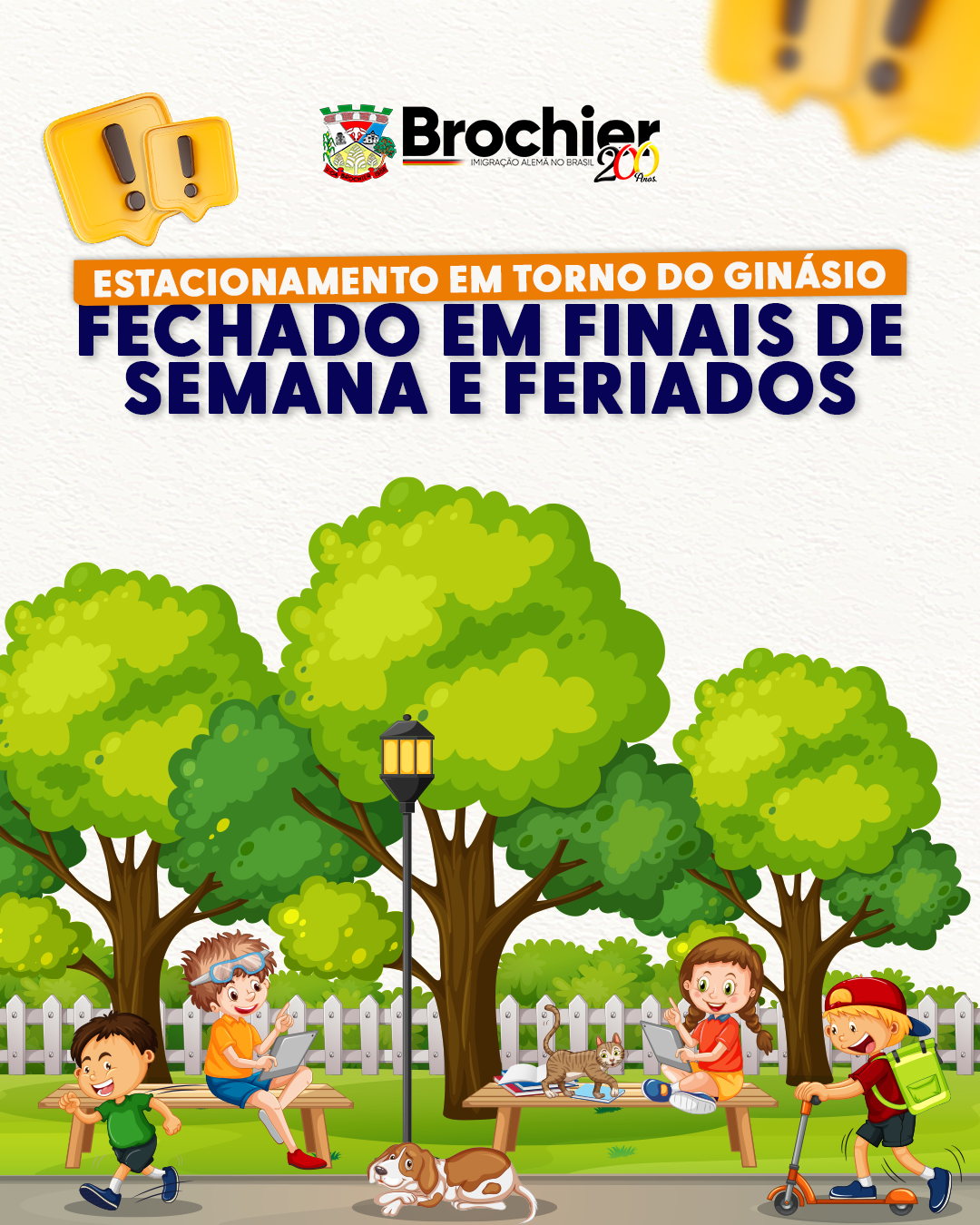 O estacionamento do Ginásio Municipal estará fechado aos FINAIS DE SEMANA E FERIADOS, garantindo mais espaço para o lazer de todos!