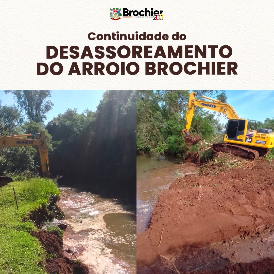 Na última semana, as atividades de desassoreamento do Arroio Brochier foram retomadas, dando sequência a um trabalho fundamental para a comunidade. A ação tem como principal objetivo minimizar as cheias que ocorrem durante períodos de fortes chuvas, contribuindo para a segurança e o bem-estar dos moradores.