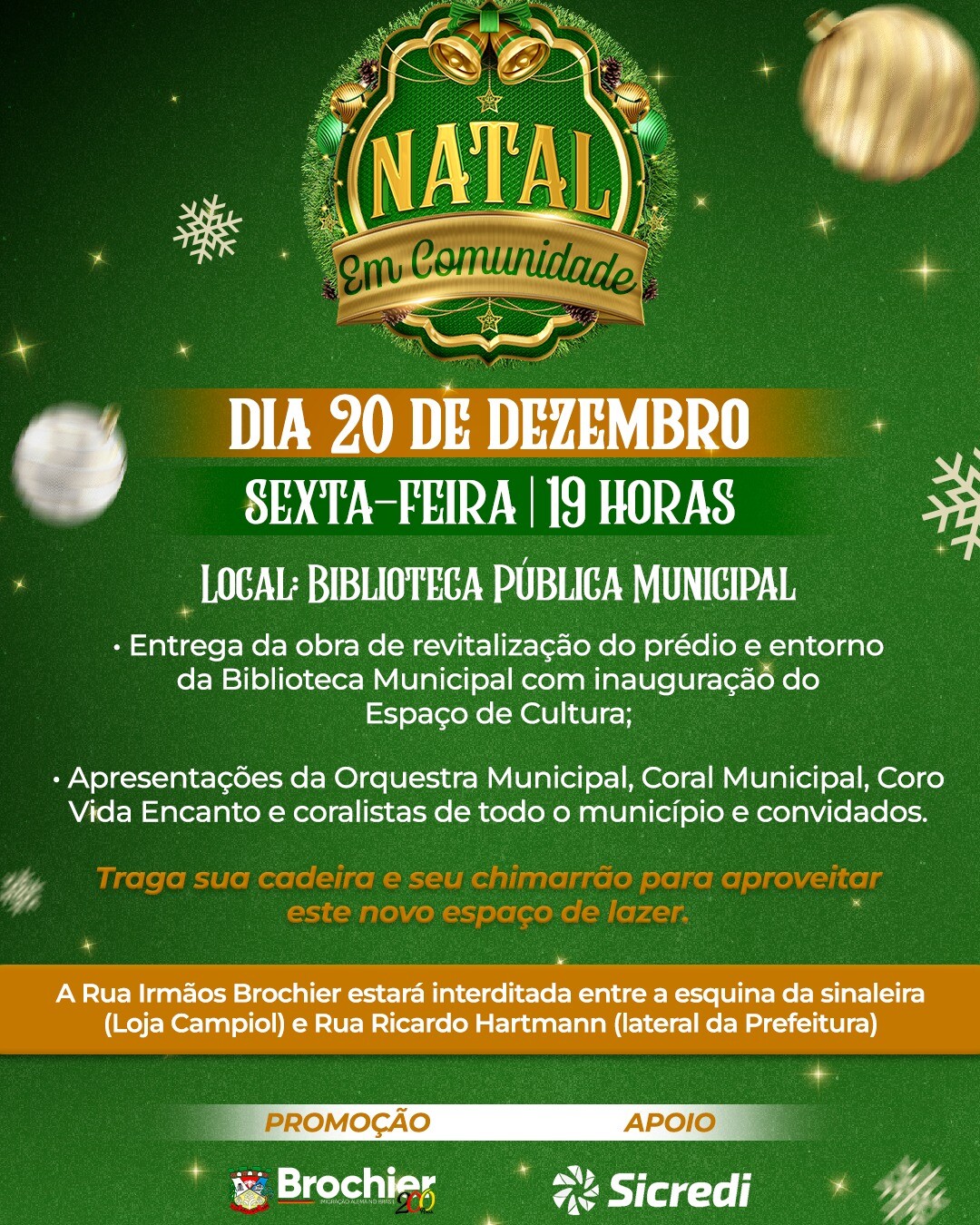 Venha celebrar a magia do Natal e prestigiar a entrega da obra de revitalização do prédio e do entorno da Biblioteca Municipal, com a inauguração do Espaço de Cultura!