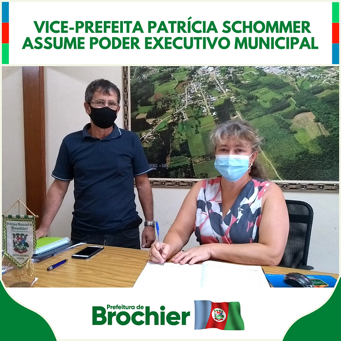 Por conta das férias do prefeito Clauro Carvalho, a vice-prefeita Patricia Schommer estará a frente da Prefeitura Municipal de Brochier até o próximo dia 09/02 (quarta-feira). Neste período, a vice-prefeita será responsável por dar continuidade a todos os trabalhos executados pelo Gabinete.