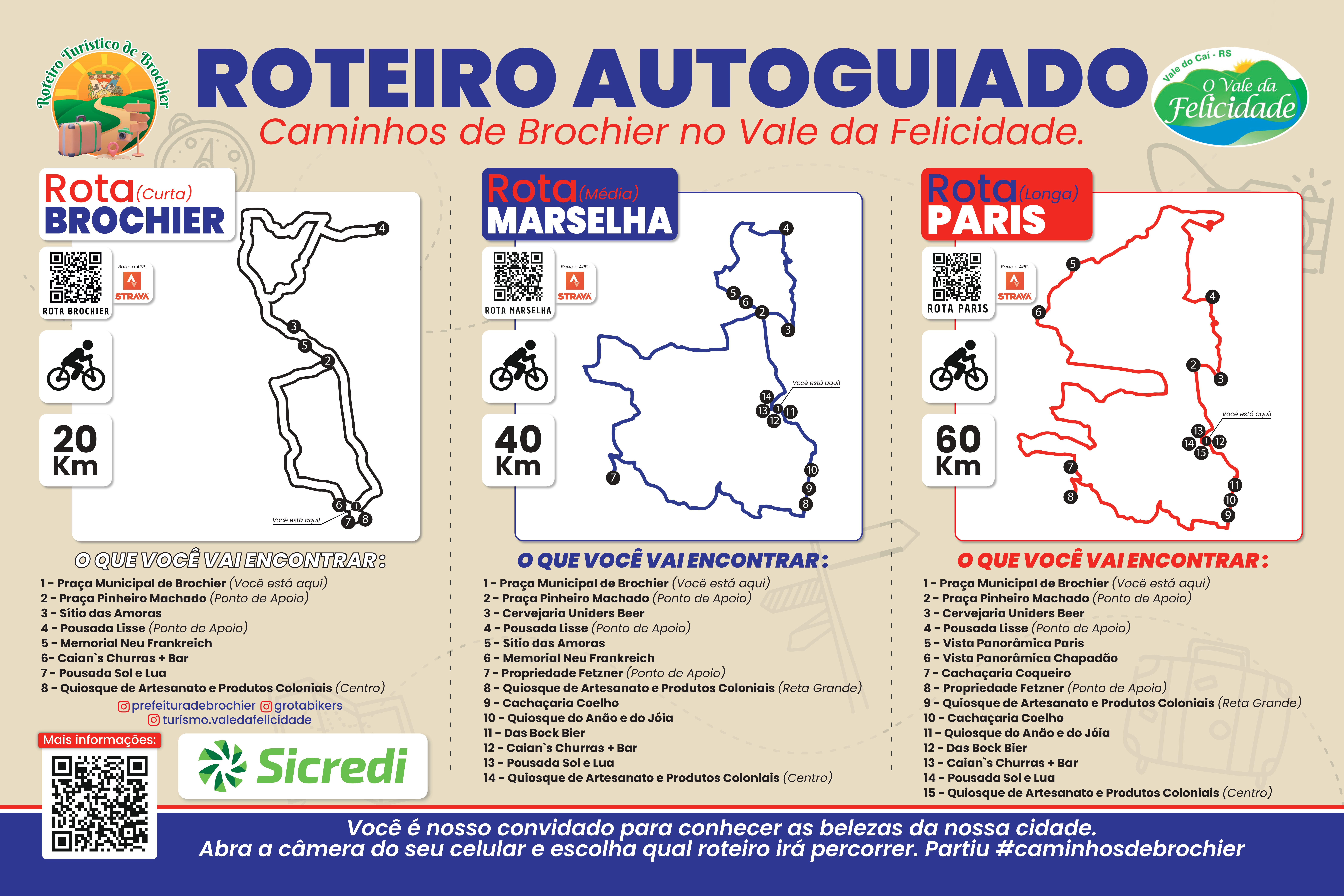 Venha fazer parte desta jornada inesquecível. Em cada curva da estrada, em cada parada nos pontos turísticos e em cada interação com a comunidade local, você encontrará um pedaço da história e um vislumbre do futuro. O Roteiro Autoguiado de Ciclismo do Município de Brochier aguarda você! Vem pra cá!