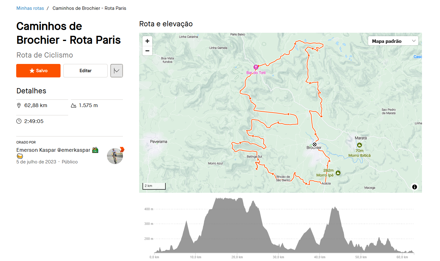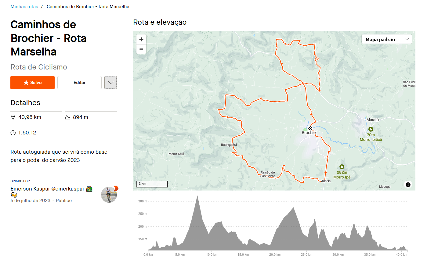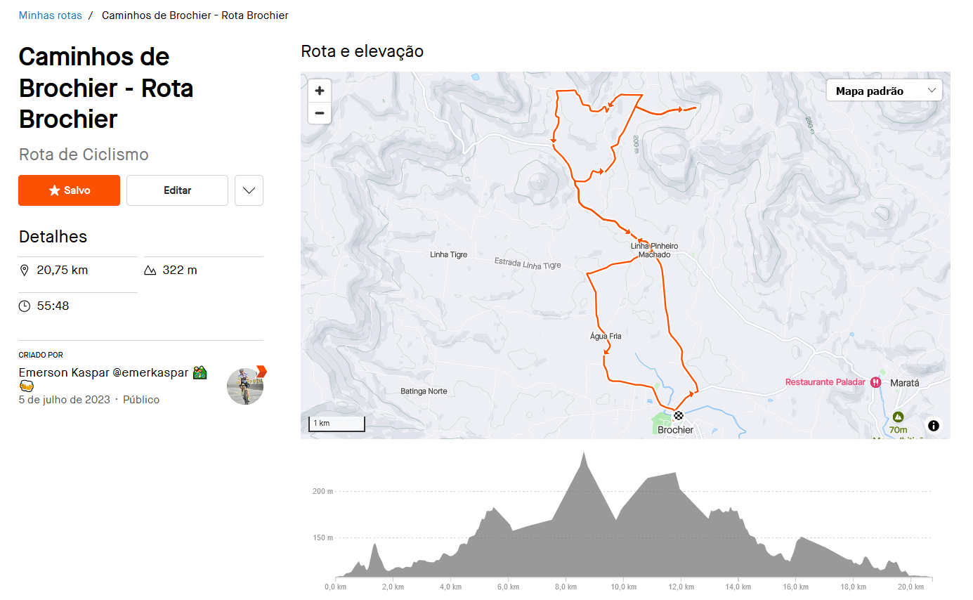 Rota Brochier, acesse: https://www.strava.com/routes/3111643004186036582